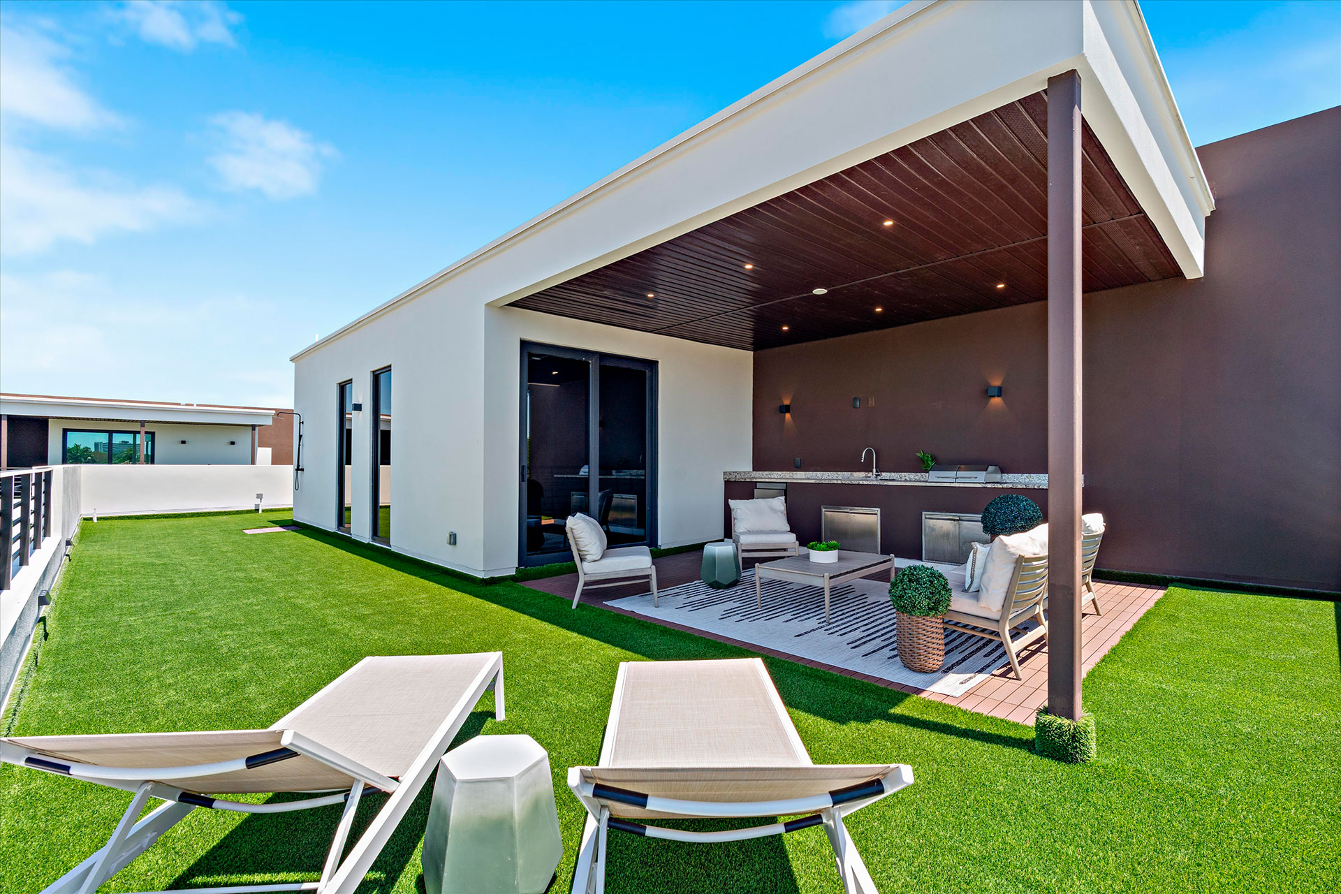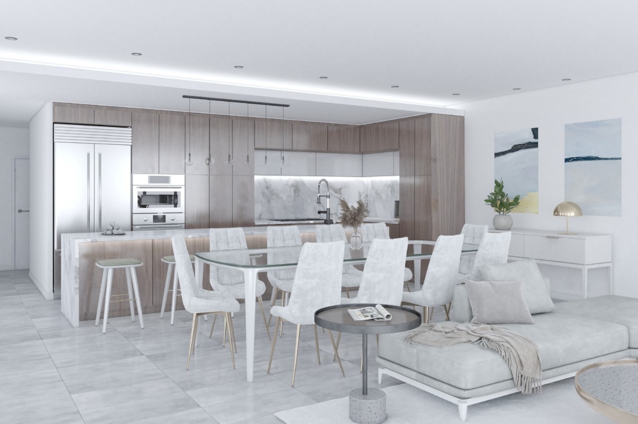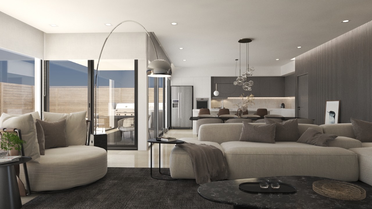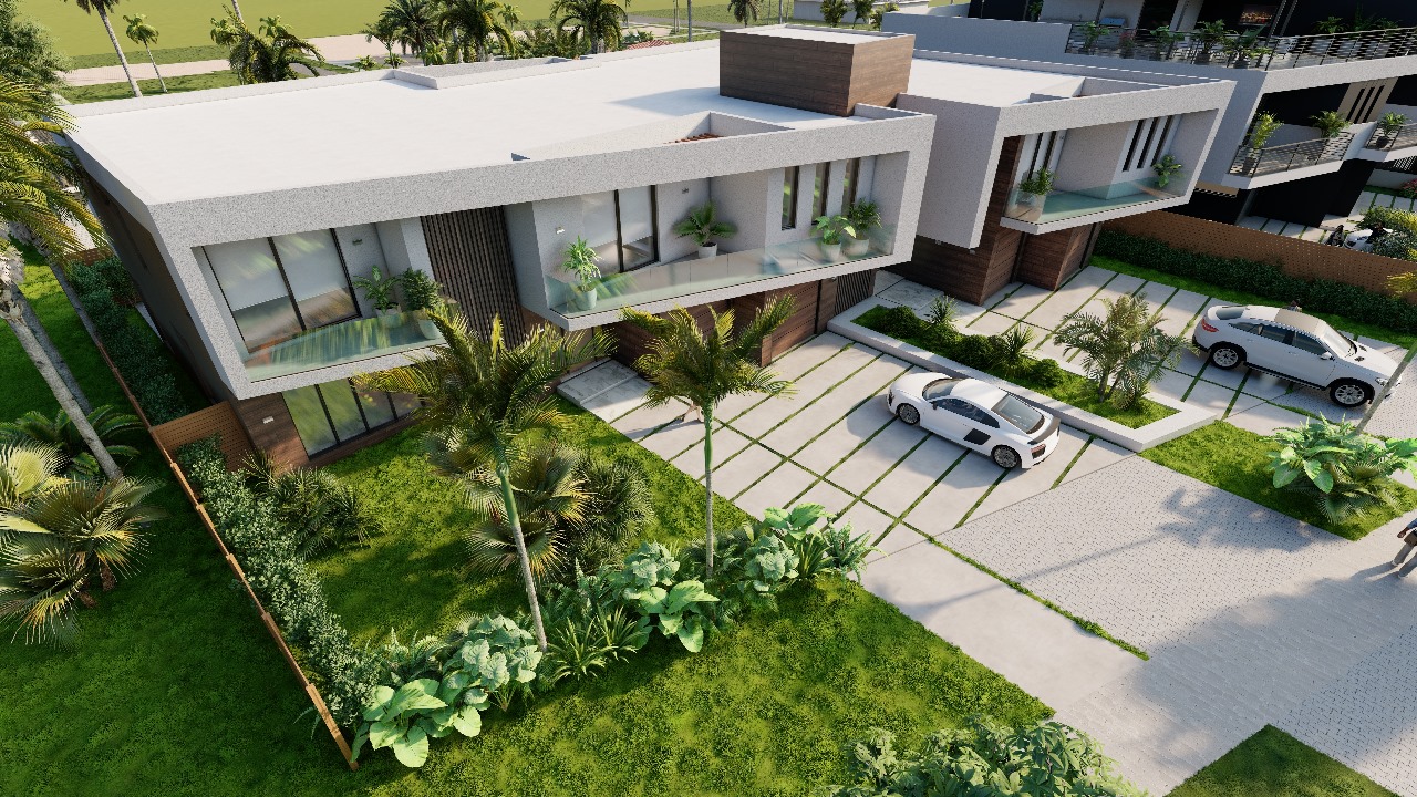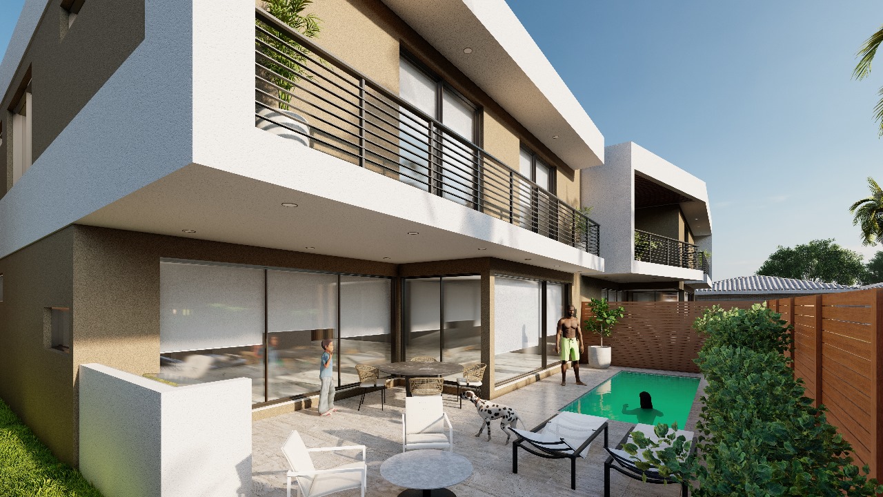 This villa offers 2.687 SF of living space and a total of 4.287 SF, featuring a garage for five vehicles, a modern kitchen, a bright living-dining room, a private pool, and a rooftop with a grill and space for a jacuzzi. Perfect for unforgettable nights under the stars.